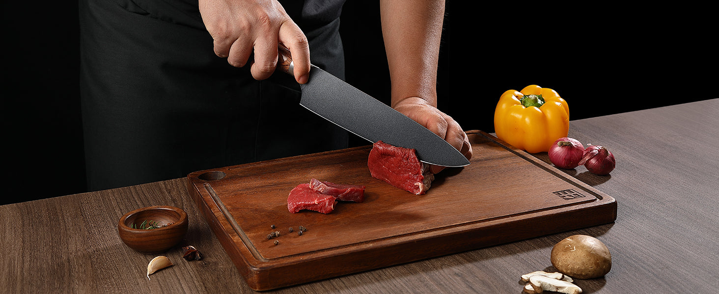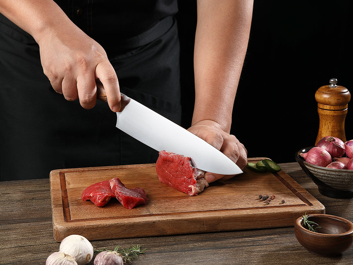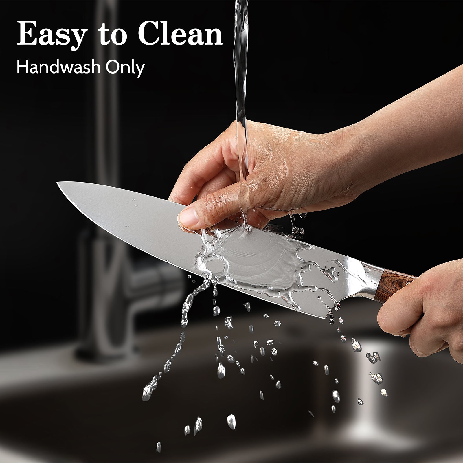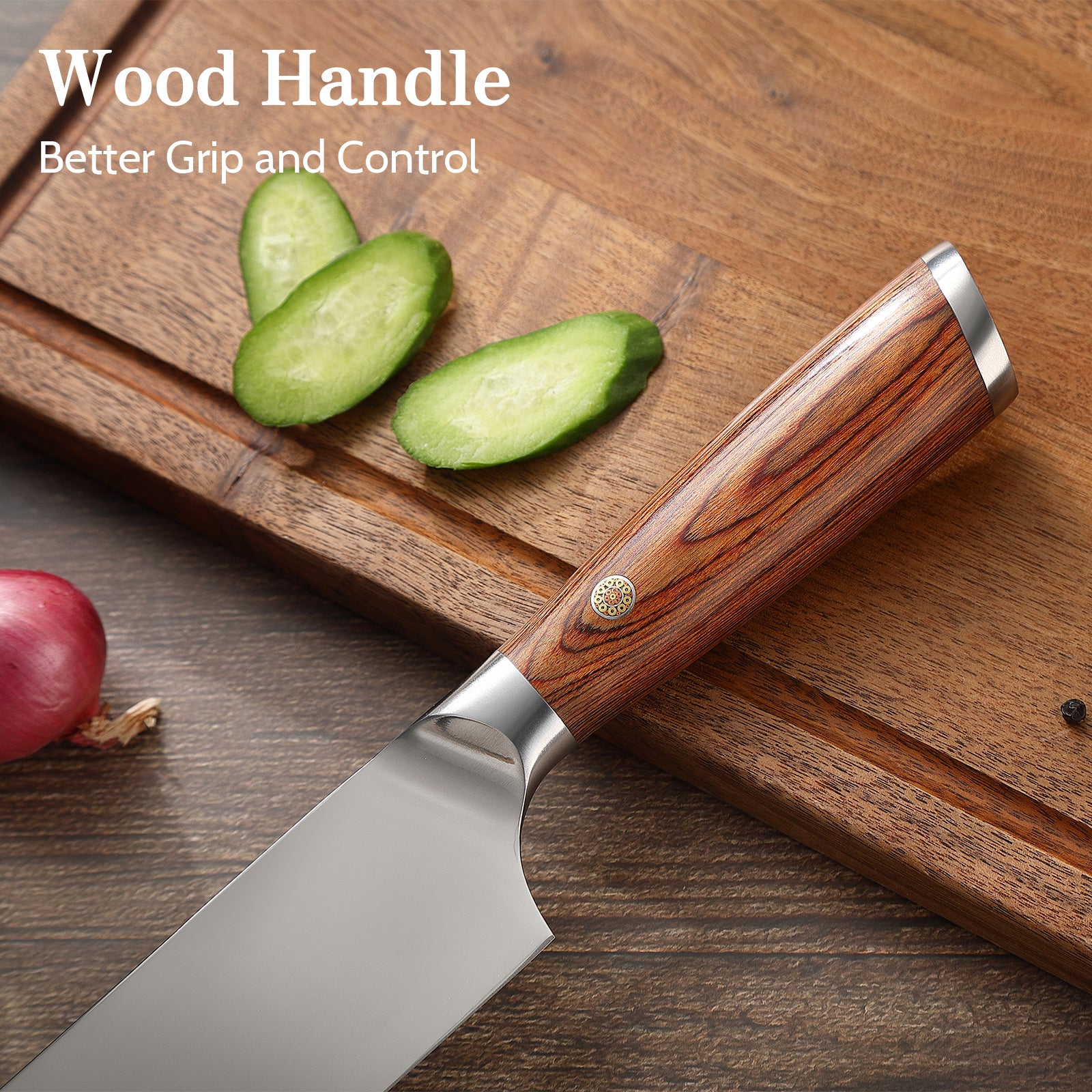 Ergonomic Wooden Handle is perfectly balanced for comfort and flexible control during all-day food prep.